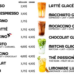 Pair your meal with a hot drink like the Caramel Macchiatto or a cold beverage like the Passion Tea or Iced Matcha for a refreshing experience.